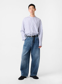 The Paolo jeans have a wide, balloon-shaped leg which creates a striking silhouetteyet remain versatile and highly wearable, straddling the gap between tailored andcasual. These are cut from our Moroccan-made regenerative raised-twill denim that’sdyed in a worn indigo-wash for a classic look. DETAILS - Five-pocket construction - Metal shank button and zip fly - Exaggerated, balloon-shaped leg - Denim using regenerative cotton - Wear it with the matching Stein Denim JacketJosefp is 6'2" / 187 cms and wears a Medium CARE 52% Regenerative Cotton 48% Cotton Wash at 30°C | Warm Iron