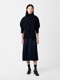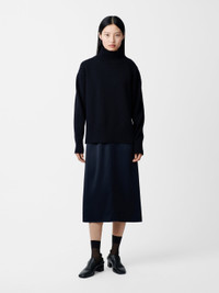 Winter ‘24 focuses on relaxed and oversized knitwear proportions, seen in the slouchy dropped shoulders on this Patria jumper. Spun from merino and cotton yarns that have a roundness and elasticity, it has a high neck with heavy ribbed stitching to hold its shape and deep side slits that allow it to sit nonchalantly over high-rise trousers and skirts. DETAILS - Ribbed hem and cuffs - High neck - Deep side slit hem - Blend of merino wool and cottonChen is 5'10"/ 178 cms and wears a UK8 CARE 50% Cotton 50% Merino Wool Delicate Dry Clean Only | Dry Flat