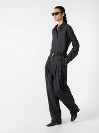 An evolution of an enduring workwear staple, Pinole is crafted with a half-placket front. It’s cut from our heritage wool: a British-milled worsted wool selected for its breathability and a dry, crisp hand feel. A wardrobe pillar that straddles the line between smart and casual, Pinole is made with dropped shoulders and soft curves in the side seams that subtly amplify the fluid silhouette. DETAILS - Spread collar - Half placket - Dropped shoulder - Buttoned cuffs - Wear it with the matching Acuna or Lira PantNataly is 5'10" / 177 cms and wears a size UK8 CARE 100% Wool Dry Clean Only Made in Portugal