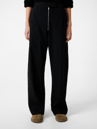 Exemplary of Studio Nicholson’s contemporary approach to tailoring, the wide-leg Pravin pant features an exposed zip fly at the high-rise hook-fastening waist. This iteration is constructed from our mid-century wool – an Italian-milled tailoring cloth with a dry, grainy handle that gives a vintage feel. DETAILS - Concealed button and hook fastening - Exposed zip fly - High waisted - Wide leg - Front patch pockets - Back patch pockets - Wear it with the matching Noland ShirtNataly is 5'10" / 177 cms and wears a size UK8 CARE 98% Virgin Wool 2% Polyamide Dry Clean Only Made in Portugal