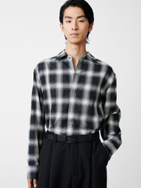 This Ray shirt pays homage to a photograph of River Phoenix in Gus Van Sant’s 108 portraits taken in Los Angeles in the early 1990s. It’s cut from lightweight cotton with a black and ecru plaid check — mimicking the play between light and shadow in the original picture — and has a classic spread collar and curved hem for a relaxed feel. DETAILS - Relaxed fit - Spread collar - Pearlescent button placket - Curved hem - Cut from lightweight cotton plaidYugo is 6'1" / 186cms and wears a Medium CARE 100% Cotton Dry Clean | Cool Iron Made in Portugal