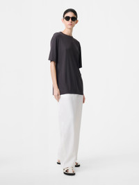 An easy-fitting t-shirt is a key component of any wardrobe and the Rond is cut from a fluid, feminine lyocell jersey. Constructed with wide sleeves and dropped shoulders, it’s relaxed shape is complemented by the fabric’s drapey character. DETAILS - Small rib knit - Dropped shoulder seam - Oversized fit - Lustrous lyocell jersey CARE 100% Lyocell Wash at 30°C | Do Not Dry Clean Made in Portugal