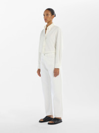 High waisted straight leg pant made from a 14oz denim fabric. Details: - Flat front - Two hand pockets and two rear patch pockets - Concealed zip fly with metal button closure - Cropped length - Belt loops Emmanuelle is 5’10” / 178cm, she wears a size 1 DETAILS & CARE 100% Cotton Dry Clean Only
