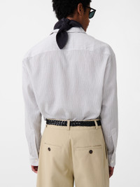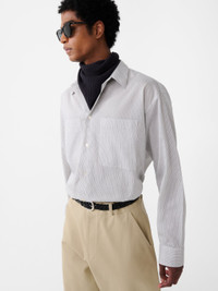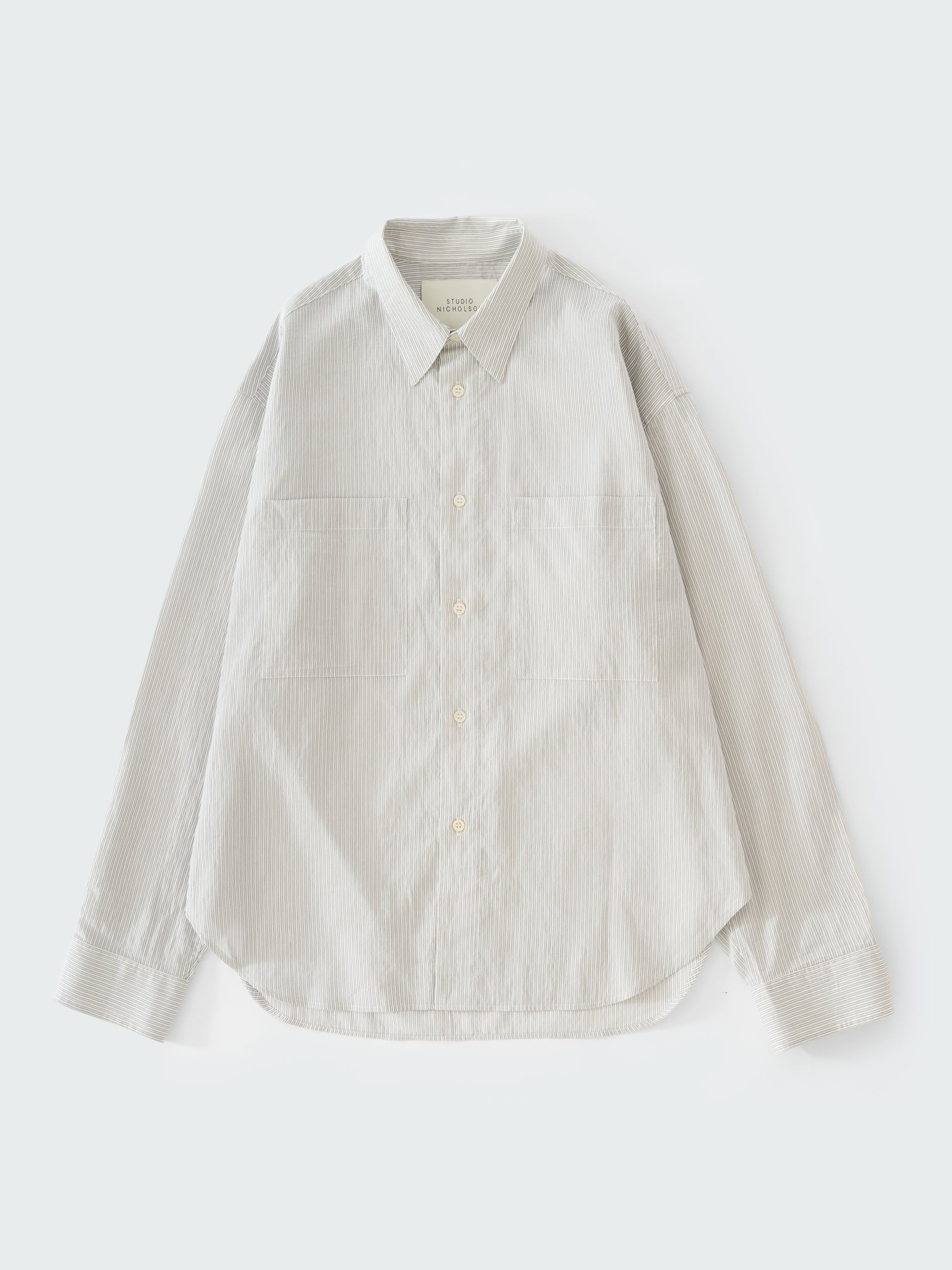 This lightweight shirt is woven in a fine, vintage-style stripe that’s exclusive to Studio Nicholson. The Salin shirt falls softly over the body with a washed, gently crinkled hand feel and features classic shirting details, including two patch pockets at the chest. DETAILS - Oversized fit - Two patch pockets on the chest - Curved hem Darron is 6'1" / 185 cms and wears a size Medium CARE 81% Lyocell 19% Polyamide Hand Wash | Delicate Dry Clean Made in Portugal