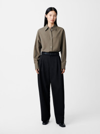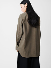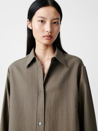 Founder and creative director, Nick Wakeman, had numerous images of figures from the 1990s on her reference board for Winter ‘24. A key design trope is the decade’s affinity for minimalism, reflected in the understated design of this Santos shirt. Made from dry cotton nylon, it is cut with a gentle rise at the side of the shirt tail to reduce constriction on the waist and has a relaxed, longline fit. DETAILS - Point collar - Buttoned cuffs - Relaxed fit - Matte finish dry cotton nylonChen is 5'10"/ 178 cms and wears a UK8 CARE 84% Cotton 16% Polyamide Dry Clean | Cool Iron Made in Portugal