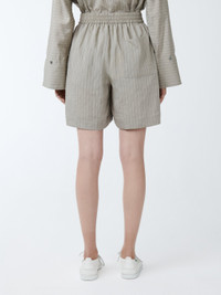 These lightweight shorts are woven in a fine, vintage-style stripe. Falling softly over the body with a washed, gently textured hand feel, the Sawel's have a relaxed, easy fit and a flattering A-line cut that finishes above the knee. They're cut to be worn mid-waist but can comfortably sit higher or lower on the body. DETAILS - Mid-rise fit - Side-seam pockets and patch pocket at the back - Elasticated waistband with a cotton drawstring - Wear it with the matching Bonsho ShirtLouise is 5'11"/ 177.8 cms and wears a UK8 CARE 81% Modal 17% Polyamide 2% Cupro Wash at 30°C | Delicate Wash | Do Not Steam Made in Portugal