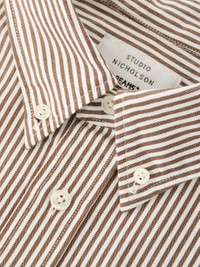 Part of Studio Nicholson’s collaboration with BEAMS Plus, the Lisa shirt is a tribute to traditional shirtmaking and an indispensable wardrobe pillar. Meticulously crafted in Japan, it’s cut from yarn-dyed striped Oxford cloth and constructed with a classic button-down collar, side gussets and a rear box pleat yoke. Lisa’s oversized fit lends itself to relaxed seasonal layering. DETAILS - Button-down collar - Chest patch pocket - Buttoned cuffs - Curved hem - Rear box pleat and hanging loop CARE 100% Cotton Delicate Wash at 30°C | Delicate Dry Clean Made in Japan