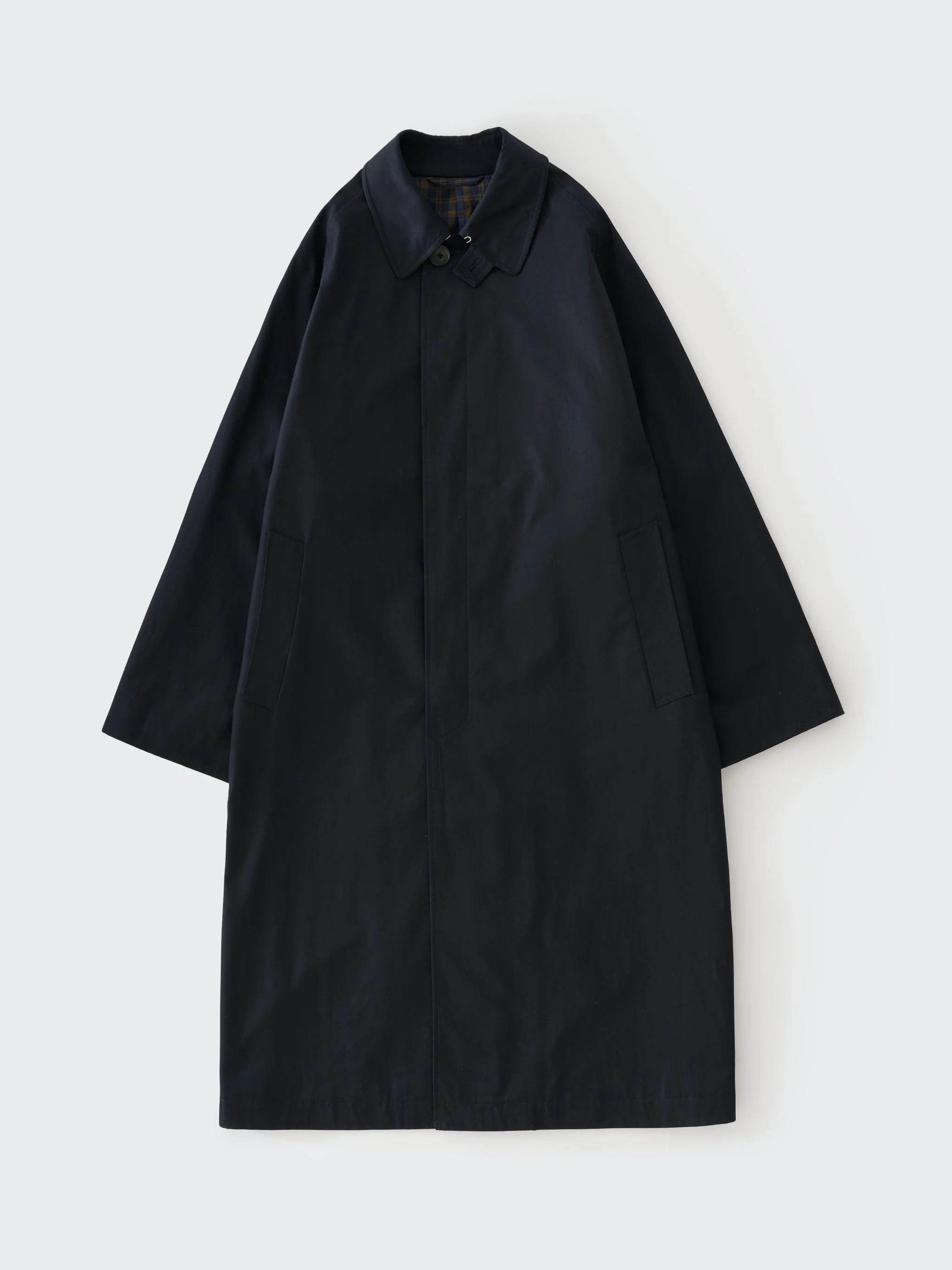 The Peter coat is a part of Studio Nicholson’s collaboration with BEAMS Plus and represents a modern take an enduring silhouette synonymous with LA-based detective Lieutenant Columbo. The product of an exacting construction process overseen by a skilled craftsman, Peter is cut from yarn-dyed, water-repellent gabardine to a generous frame and features a throat latch, deep welt pockets and a single-button back vent. It’s checked lining is a subtle nod to Ivy League design codes. DETAILS - Hand-glued construction - Concealed button placket - Welt pockets - Adjustable buttoned cuffs - Single-button back ventTheodor is 6'2" / 188 cms and wears a Medium CARE Shell: 100% Cotton, Body Lining: 100% Cotton, Sleeve Lining: 100% Cupra Delicate Dry Clean Only Made in Japan