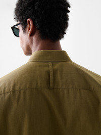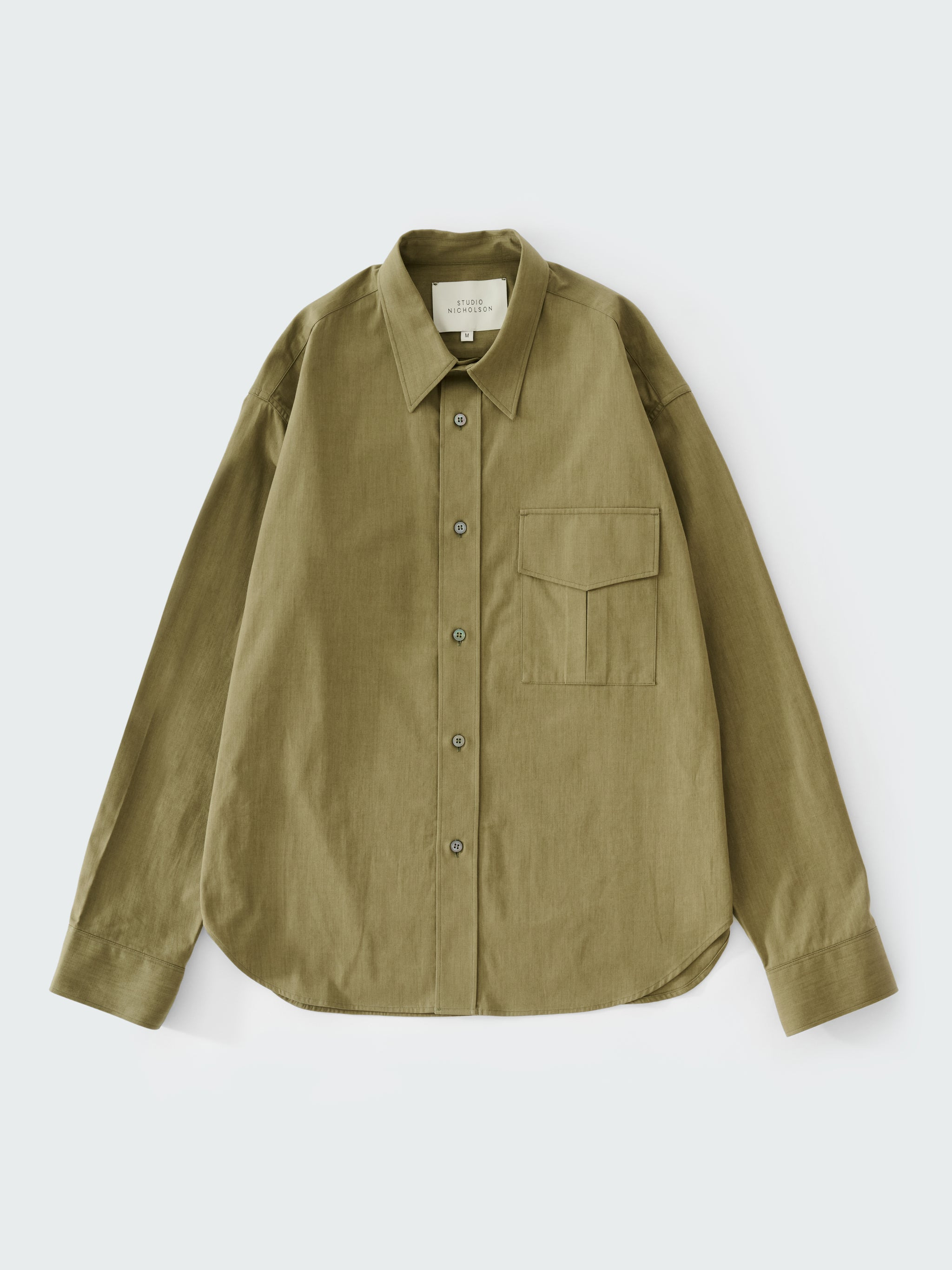 The Solst shirt is cut from our slub vintage cotton: an Italian-milled fabric noted for its compact weave and an irregular hand feel that recalls Studio Nicholson’s workwear influences. Constructed with a point collar and dropped shoulders, it features a pleated flap pocket inspired by vintage military uniforms. DETAILS - Point collar - Buttoned cuffs - Chest flap pocket - Rear vertical hanging loop - Wear it with the matching Caro PantDarron is 6'1" / 185 cms and wears a size Medium CARE 100% Cotton Hand Wash | Dry Clean Made in Portugal