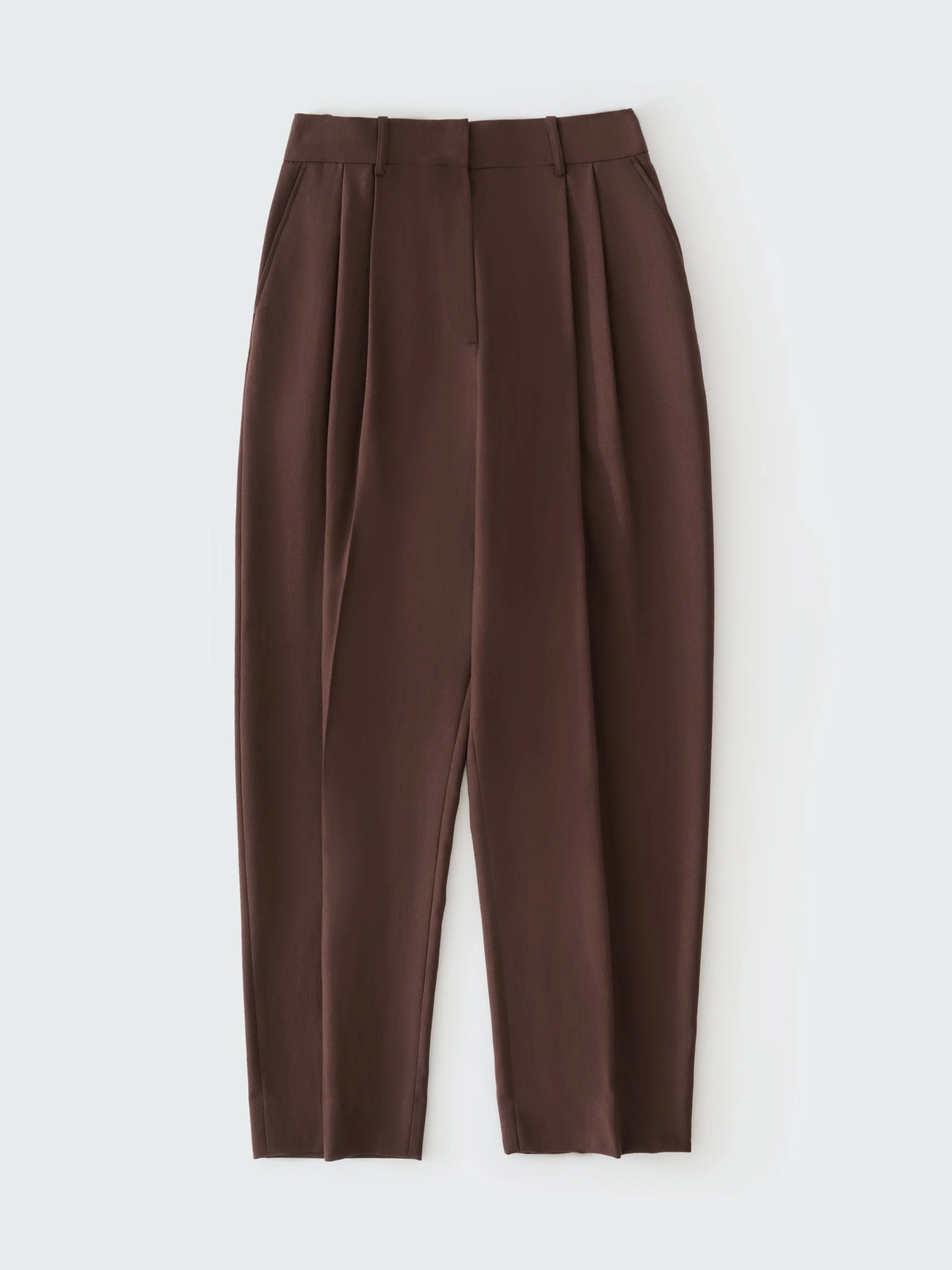 Sperro is an adaptation of our popular Acuna pants, slimming them down slightly while retaining much of the latter style’s trademark volume. They have deep double pleats and a slight taper. This iteration is made from textured wool for a rich tactility. DETAILS - Hook fastening - Rear welt pockets - Relaxed, tapered fit - Wear it with the matching Bute TopMiko is 5'9" / 177cms and wears a size UK8 CARE 98% Virgin Wool 2% Polyamide Do NOT Wash | Dry Clean Only Made in Portugal