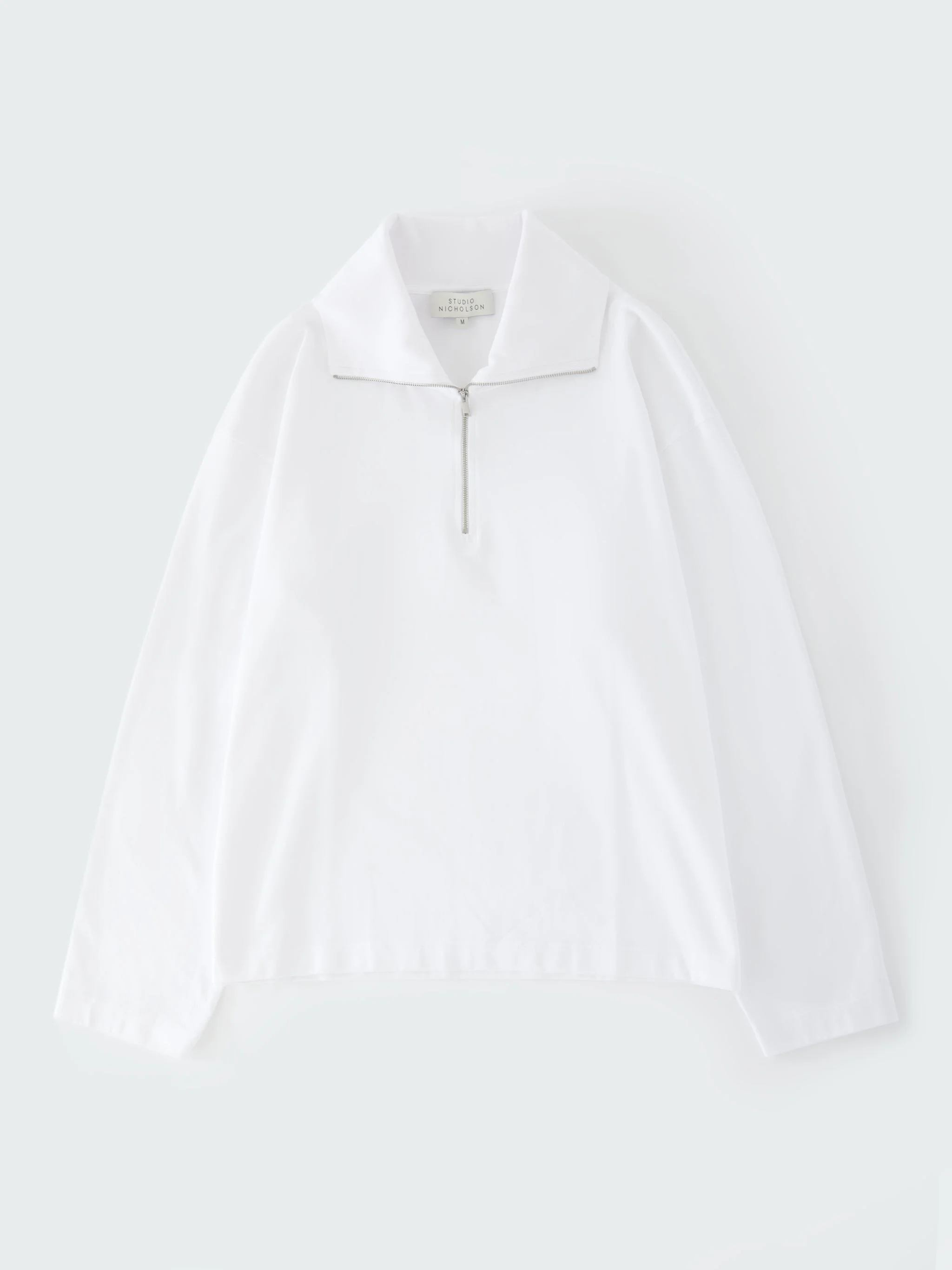 A perfect autumnal layer, the Stoll has been crafted from heavy yet soft Portuguese jersey. The high-grade zip lends it an air of luxury, and means the elasticated collar can be worn open or zipped up on colder days. DETAILS - Partial zip - Elasticated collarLi is 6'1" / 185 cms and wears a Medium CARE 100% Cotton Wash at 30°C | Do Not Dry Clean Made in Portugal