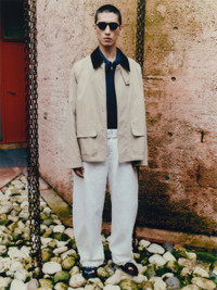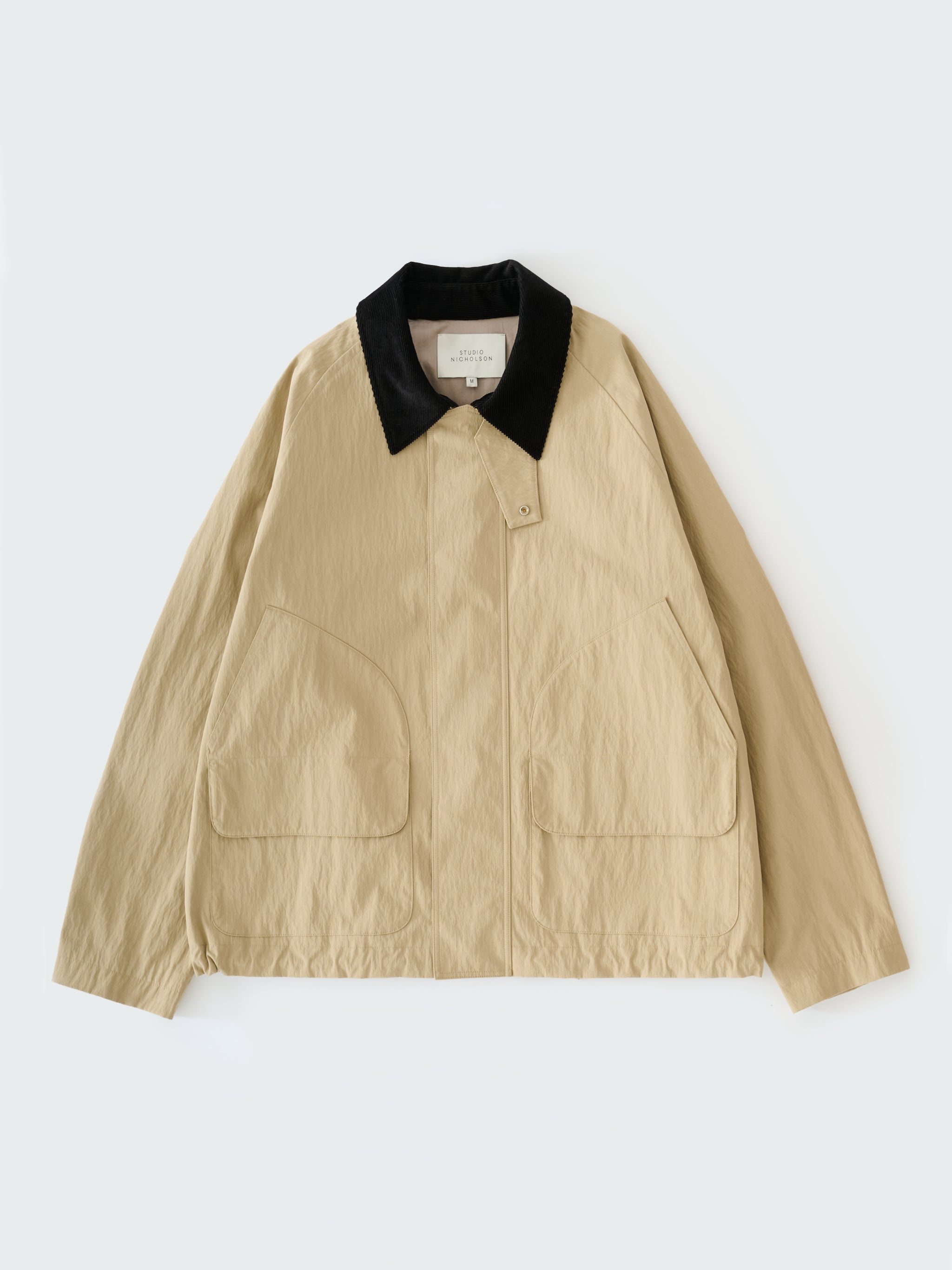 Cut from a blend of organic cotton that’s bio washed for a tactile finish, the Towa is a contemporary take on the traditional workwear jacket. It features a contrast collar in soft corduroy, while a snap-fastening throat latch and internal drawstring hem allow it to be adjusted for added insulation. Note the clever pattern of pockets at the front – the base of the top slanted pockets becomes the flap front to the pockets below. DETAILS - Contrast corduroy collar - Snap-fastening throat latch - Raglan sleeves - Two front slant pockets - Two front flap pockets - Zip front, snap-fastening placketJosefp is 6'2" / 187 cms and wears a Medium CARE 70% Organic Cotton 30% Recycled Nylon Do NOT Wash | Wet Dry Clean Only