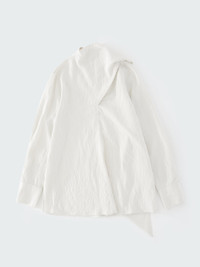 Our Utah top is imagined in a modal blend fabric, which has a slightly crinkled finish for enhanced textural interest. It has an asymmetric neckline with a scarf detail to elevate the loose fit and is cut with a longline hem, making it ideal to layer over classic tailoring or casual denim. DETAILS - Scarf neck detail - Long, buttoned sleeves - Loose fit - Crinkled modal blendJen is 5'10 / 177 cms and wears UK8 CARE 81% Modal 17% Polyamide 2% Cupro Delicate Dry Clean or Wash | Do not Steam Made in Portugal