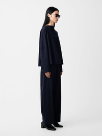 This Velho top is cut from our signature Tropical Wool, a fabric spun with tightly twisted yarns that result in a matte finish and enhanced tensile strength. Flat-felled seams run along the collar, chest and back for added structure and a V-shaped buttoned fastening to the reverse allows the silhouette to hang with a clean drape. DETAILS - Wide boat neck - V-shaped back opening - Loose, flowing sleeves - Tactile Tropical Wool - Wear it with the matching Acuna PantChen is 5'10"/ 178 cms and wears a UK8 CARE 58% Virgin Wool 38% Cordura 4% Elastane Dry Clean | Delicate Wash Made in Portugal