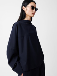 This Velho top is cut from our signature Tropical Wool, a fabric spun with tightly twisted yarns that result in a matte finish and enhanced tensile strength. Flat-felled seams run along the collar, chest and back for added structure and a V-shaped buttoned fastening to the reverse allows the silhouette to hang with a clean drape. DETAILS - Wide boat neck - V-shaped back opening - Loose, flowing sleeves - Tactile Tropical Wool - Wear it with the matching Acuna PantChen is 5'10"/  178 cms and wears a UK8 CARE 58% Virgin Wool 38% Cordura 4% Elastane Dry Clean | Delicate Wash Made in Portugal