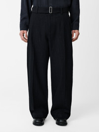 Cut to a lightly voluminous leg that’s sharply pressed for a neat impression, the Vital pant evidences Creative Director Nick Wakeman’s commitment to perfecting the classics. This mid-rise pair is tailored from a slubbed cotton and wool blend that’s woven with a broken pinstripe in an irreverent nod to heritage suiting. DETAILS - Mid-rise front - Belt loops, removable belt - Pressed creases - Zip fly and button closure - Slanted side pockets and two rear welt pockets - Wear it with the matching Conde JacketTheodor is 6'2" / 188 cms and wears a Medium CARE 78% Cotton 16% Wool 4% Polyamide 1% Viscose 1% Polyester Delicate Dry Clean Only Made in Portugal