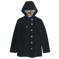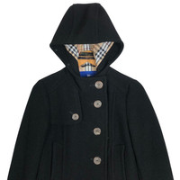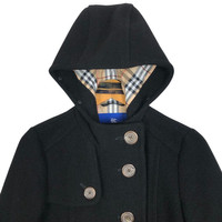 Burberry London Blue Label hooded peacoat in black colour. Double breasted wool coat. Still in good condition. See pictures for more details Condition : 9/10 Measurement Pit : 18 inch Length : 28 inch Shoulder : 15 inch Sleeve : 24.5 inch Size On Tag : 38 Size Recommended : S Normal Shipping FEDEX Processing time : 7-14 days Express Shipping DHL Processing time : 4-7 days IMPORTANT Check the manual measurement given before purchase. Failed to do so, no refund. StuffM193