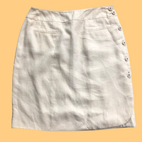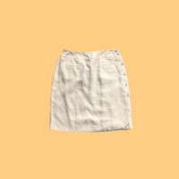 Chanel Boutique 96P skirt suits ivory in cream colour. Silk lining skirt. Still in good condition EXCEPT small washable stains near the hem. See pictures for more details Condition : 7.9/10 Measurement Waist : 14 inch Hip : 18.5 inch Length : 20.5 inch Hem : 20.5 inch Size On Tag : 40 Size Recommended : 28 Normal Shipping FEDEX Processing time : 7-14 days Express Shipping DHL Processing time : 4-7 days IMPORTANT Check the manual measurement given before purchase. Failed to do so, no refund. StuffM173