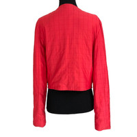 Chanel 2000 lipstick red quilted nylon jacket in red colour. Buttonless light jacket. Still in good condition EXCEPT some stains on the jacket. See pictures for more details Condition : 7/10 Measurement Pit : 19 inch Length : 18 inch Shoulder : 17 inch Sleeve : 25 inch Size On Tag : none Size Recommended : S Normal Shipping FEDEX Processing time : 7-14 days Express Shipping DHL Processing time : 4-7 days IMPORTANT Check the manual measurement given before purchase. Failed to do so, no refund. StuffM165