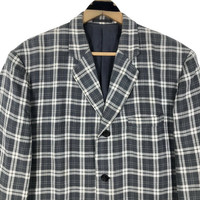 Vintage 90s Comme Des Garcons Homme plaid linen coat in grey colour. Single breasted notch lapel light jacket in checkered pattern. Still in good condition EXCEPT some washable stains on the front. See pictures for more details Condition : 7.9/10 Measurement Pit : 23.5 inch Length : 28.5 inch Shoulder : 19 inch Sleeve : 24 inch Size On Tag : M Size Recommended : L Normal Shipping FEDEX Processing time : 7-14 days Express Shipping DHL Processing time : 4-7 days IMPORTANT Check the manual measurement given before purchase. Failed to do so, no refund. StuffM158