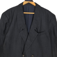 Vintage 90s Comme Des Garcons Homme Plus silk blazer in dark navy colour. Double breasted coat with unique lapel. Still in good condition EXCEPT some washable dirts at the back. See pictures for more details Condition : 8/10 Measurement Pit : 22 inch Length : 30 inch Shoulder : 20 inch Sleeve : 23.5 inch Size On Tag : S Size Recommended : S-M Normal Shipping FEDEX Processing time : 7-14 days Express Shipping DHL Processing time : 4-7 days IMPORTANT Check the manual measurement given before purchase. Failed to do so, no refund. StuffM167