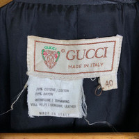 Vintage 70s-80s Gucci velvet coat in black colour. Single breasted blazer. Still in good condition EXCEPT slight defect (broken thread) on the pocket (can be fix). See pictures for more details Condition : 7.9/10 Measurement Pit : 17.5 inch Length : 26 inch Shoulder : 17 inch Sleeve : 24 inch Size On Tag : 40 Size Recommended : 38-40 Normal Shipping FEDEX Processing time : 7-14 days Express Shipping DHL Processing time : 4-7 days IMPORTANT Check the manual measurement given before purchase. Failed to do so, no refund. StuffM192