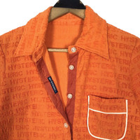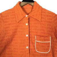 Vintage Hysteric Glamour I Do My Best polo shirt in orange colour. Large collar shirt with embossed logo all over the shirt. Still in good condition. See pictures for more details Condition : 9/10 Measurement Pit : 18 inch Length : 26 inch Shoulder : 15 inch Sleeve : 9 inch Size On Tag : Free Size Recommended : XS-M Shipping DHL Processing time : 3-5 days IMPORTANT Check the manual measurement given before purchase. Failed to do so, no refund. StuffM142