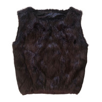 Loewe Madrid faux fur sleeveless cropped vest jacket in dark brown colour. Pullover tank tops jacket. Still in good condition. See pictures for more details Condition : 9/10 Measurement Pit : 19.5 inch Length : 20.5 inch Shoulder : 15.5 inch Sleeve : - Size On Tag : 42 Size Recommended : XS-S Normal Shipping FEDEX Processing time : 7-14 days Express Shipping DHL Processing time : 4-7 days IMPORTANT Check the manual measurement given before purchase. Failed to do so, no refund. StuffM154