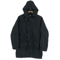 Margaret Howell X Alpha Industries hooded puffer jacket in black colour. Full zip and button up jacket with quilted lining. Still in good condition EXCEPT little bit sun faded and washable dirts. See pictures for more details Condition : 7.7/10 Measurement Pit : 20.5 inch Length : 31 inch Shoulder : - Sleeve : 28 inch Size On Tag : 2 Size Recommended : XS-S Shipping DHL Processing time : 3-5 days IMPORTANT Check the manual measurement given before purchase. Failed to do so, no refund. StuffM127