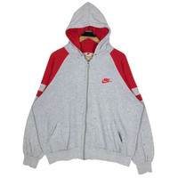 Vintage 90s Nike Swoosh sweatshirt with hoodie in grey colour. Full zip sweater with embroidered logo on the chest. Still in good condition EXCEPT some washable dirst and stains on the wrists. See pictures for more details Condition : 7.9/10 Measurement Pit : 27 inch Length : 25 inch Shoulder : - Sleeve : 31 inch Size On Tag : XL Size Recommended : XL Normal Shipping FEDEX Processing time : 7-14 days Express Shipping DHL Processing time : 4-7 days IMPORTANT Check the manual measurement given before purchase. Failed to do so, no refund. StuffM161