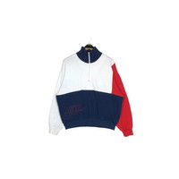 Vintage 90s Nike Swoosh turtleneck sweatshirt in white colour. Quarter zipped sweater with printed logo at the bottom. Still in good condition EXCEPT small washable dirts on the right sleeve. See pictures for more details Condition : 7.9/10 Measurement Pit : 25 inch Length : 24 inch Shoulder : 25 inch Sleeve : 22 inch Size On Tag : XL Size Recommended : L-XL Normal Shipping FEDEX Processing time : 7-14 days Express Shipping DHL Processing time : 4-7 days IMPORTANT Check the manual measurement given before purchase. Failed to do so, no refund. StuffM161