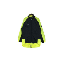 Vintage 90s Nike swoosh windbreaker jacket in black and fluorescent yellow colour. Zip up nylon light jacket with printed and embroidered logo on both sides. Still in good condition EXCEPT some washable dirts. See pictures for more details Condition : 7.9/10 Measurement Pit : 23 inch Length : 34 inch Shoulder : - Sleeve : 32 inch Size On Tag : M Size Recommended : M-L Normal Shipping FEDEX Processing time : 7-14 days Express Shipping DHL Processing time : 4-7 days IMPORTANT Check the manual measurement given before purchase. Failed to do so, no refund. StuffM169