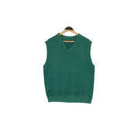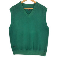 Vintage Nike Golf v-neck vest in green colour. Pullover sleeveless sweater with embroidered swoosh logo near the hem. Still in good condition EXCEPT some washable dirts on the vest. See pictures for more details Condition : 6.9/10 Measurement Pit : 21 inch Length : 25 inch Shoulder : 18 inch Sleeve : - Size On Tag : S Size Recommended : S Normal Shipping FEDEX Processing time : 7-14 days Express Shipping DHL Processing time : 4-7 days IMPORTANT Check the manual measurement given before purchase. Failed to do so, no refund. StuffM174