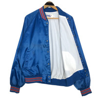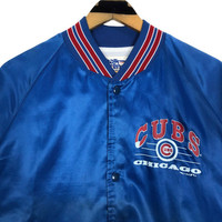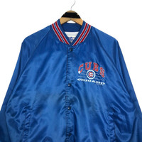 Vintage 1991 MLB Chicago Cubs nylon varsity jacket in blue colour. Button up light jacket with printed logo on the chest. Still in good condition EXCEPT some paint stains on the jacket. See pictures for more details Condition : 7/10 Measurement Pit : 25 inch Length : 26 inch Shoulder : - Sleeve : 34 inch Size On Tag : L Size Recommended : L-XL Shipping FEDEX Processing time : 3-5 days IMPORTANT Check the manual measurement given before purchase. Failed to do so, no refund. StuffM145