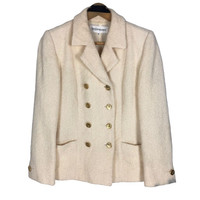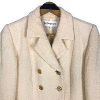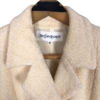 Yves Saint Laurent short coat in cream colour. Double breasted wool light jacket. Still in good condition EXCEPT washable dirts on the wrist. See pictures for more details Condition : 7.9/10 Measurement Pit : 18 inch Length : 23 inch Shoulder : 15 inch Sleeve : 23 inch Size On Tag : 36 Size Recommended : S Normal Shipping FEDEX Processing time : 7-14 days Express Shipping DHL Processing time : 4-7 days IMPORTANT Check the manual measurement given before purchase. Failed to do so, no refund. StuffM166