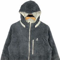 Vintage Gramicci fleece sweatshirt with hoodie in grey colour. Zip up sweater with embroidered logo on the chest. Good condition EXCEPT some stains on the lining. See the pictures for more details Condition : 8/10 Measurement Pit : 21.5 inch Length : 24.5 inch Shoulder : 17 inch Sleeve : 25.5 inch Size On Tag : M Size Recommended : M Shipping DHL Processing time : 3-5 days IMPORTANT Check the manual measurement given before purchase. Failed to do so, no refund. StuffM83