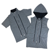 Japanese Brand - PPFM Sleeveless 2 in 1 Sweatshirt Hooded Vest Asymmetrical