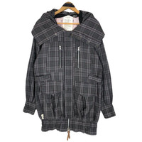 Japanese Brand - Rövtski Plaid Zip Up Hooded Parka Long Coat Hoodie