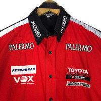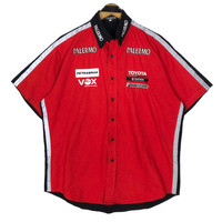 Toyota Motorsports Toyotoshi racing team shirt in red and black colour. Button up short sleeve shirt with embroidered logo on both sides. Still in good condition EXCEPT some washable dirts on the front. See pictures for more details Condition : 7.9/10 Measurement Pit : 23.5 inch Length : 31.5 inch Shoulder : 19 inch Sleeve : 10 inch Size On Tag : none Size Recommended : M-L Normal Shipping FEDEX Processing time : 7-14 days Express Shipping DHL Processing time : 4-7 days IMPORTANT Check the manual measurement given before purchase. Failed to do so, no refund. StuffM180
