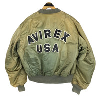 Vintage 80s/90s Avirex USA MA-1 bomber jacket in green colour. Zip up jacket with embroidered logo at the back. Still in good condition EXCEPT slightly distressed (sun bleach). See pictures for more details Condition : 7.9/10 Measurement Pit : 26 inch Length : 25 inch Shoulder : 22 inch Sleeve : 28.5 inch Size On Tag : none Size Recommended : L Normal Shipping FEDEX Processing time : 7-14 days Express Shipping DHL Processing time : 4-7 days IMPORTANT Check the manual measurement given before purchase. Failed to do so, no refund. StuffM191