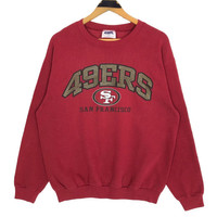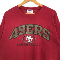 Vintage 2000 NFL San Francisco 49ers crewneck sweatshirt by Nutmeg Mills in maroon colour. Still in good condition EXCEPT very small spot of sun bleach at the back. See pictures for more details Condition : 7.5/10 Measurement Pit : 22.5 inch Length : 25.5 inch Shoulder : 22.5 inch Sleeve : 22.5 inch Size On Tag : L Size Recommended : L Normal Shipping FEDEX Processing time : 7-14 days Express Shipping DHL Processing time : 4-7 days IMPORTANT Check the manual measurement given before purchase. Failed to do so, no refund. StuffM165