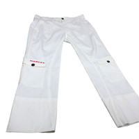 Oakley cotton cargo pants in white colour. Embroidered logo on the pocket. Still in good condition. See pictures for more details Condition : 9/10 Measurement Waist : 16.5 inch Length : 38.5 inch Inseam : 27.5 inch Leg Opening : 8.5 inch Front Rise : 12 inch Thigh : 12.5 Knee : 8.5 inch Size On Tag : 33 Size Recommended : 33-34 inch Shipping DHL Processing time : 3-5 days IMPORTANT Check the manual measurement given before purchase. Failed to do so, no refund. StuffM133