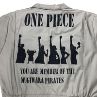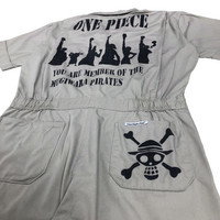 One Piece Member Of Mugiwara Pirates coverall by Walls Master Made in grey colour. Short sleeve coverall with printed logo at the back. Still in good condition EXCEPT slightly defect (scratch/hole can be fix) at the back and small stains from the bleach. See pictures for more details Condition : 7/10 Measurement Top Pit : 24 inch Length : 19.5 inch Shoulder : 20 inch Sleeve : 9.5 inch Bottom Length : 41 inch Thigh : 14 inch Knee : 11 inch Waist : 18 inch Inseam : 29 inch Leg Opening : 10 inch Front Rise : 13 inch Size On Tag : 40 Regular Size Recommended : 40 Regular Shipping FEDEX Processing time : 3-5 days IMPORTANT Check the manual measurement given before purchase. Failed to do so, no refund. StuffM145