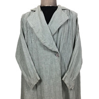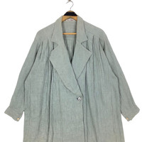 Vintage 70s Issey Miyake hemp long coat in greyish blue colour. Single breasted large collar. Still in good condition EXCEPT little bit sun bleach. See pictures for more details Condition : 7/10 Measurement Pit : 26 inch Length : 43 inch Shoulder : 21 inch Sleeve : 21.5 inch Size On Tag : None Size Recommended : L Normal Shipping FEDEX Processing time : 7-14 days Express Shipping DHL Processing time : 4-7 days IMPORTANT Check the manual measurement given before purchase. Failed to do so, no refund. StuffM159
