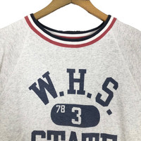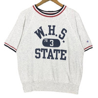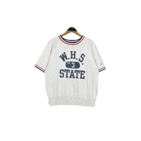 Vintage 50s Champion X Washington State High School crewneck short sleeve sweatshirt in white colour. Pullover ringer sweater with printed logo on the front. Still in good condition. See pictures for more details Condition : 9/10 Measurement Pit : 21 inch Length : 23 inch Shoulder : - Sleeve : 14 inch Size On Tag : 38-40 Size Recommended : S Normal Shipping FEDEX Processing time : 7-14 days Express Shipping DHL Processing time : 4-7 days IMPORTANT Check the manual measurement given before purchase. Failed to do so, no refund. StuffM179
