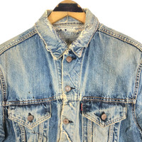 Vintage 70s Levi’s Strauss 525 Big E ripped denim jacket in blue colour. Buttons up jacket in distressed style. Still in good condition. See pictures for more details Condition : 7/10 Measurement Pit : 22 inch Length : 24 inch Shoulder : 18.5 inch Sleeve : 11 inch Size On Tag : none Size Recommended : S-M Normal Shipping FEDEX Processing time : 7-14 days Express Shipping DHL Processing time : 4-7 days IMPORTANT Check the manual measurement given before purchase. Failed to do so, no refund. StuffM171