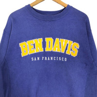 Vintage 90s Ben Davis San Francisco crewneck sweatshirt in purpleish blue colour. Pullover sweater with embroidered logo on the front. Still in good condition EXCEPT some washable dirts and some sun bleach at the back. See pictures for more details Condition : 6.9/10 Measurement Pit : 22.5 inch Length : 25 inch Shoulder : 21.5 inch Sleeve : 24.5 inch Size On Tag : M Size Recommended : M Normal Shipping FEDEX Processing time : 7-14 days Express Shipping DHL Processing time : 4-7 days IMPORTANT Check the manual measurement given before purchase. Failed to do so, no refund. StuffM175