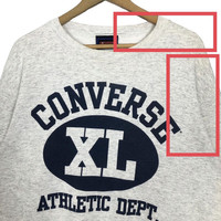 Vintage 90s Converse Athletic Dept crewneck sweatshirt in whiteish gray colour. Pullover sweater with printed logo on the front. Still in good condition EXCEPT stains on the sweater. See pictures for more details Condition : 6/10 Measurement Pit : 22.5 inch Length : 23.5 inch Shoulder : 22.5 inch Sleeve : 23 inch Size On Tag : L Size Recommended : M-L Normal Shipping FEDEX Processing time : 7-14 days Express Shipping DHL Processing time : 4-7 days IMPORTANT Check the manual measurement given before purchase. Failed to do so, no refund. StuffM174