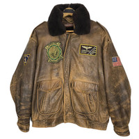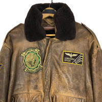 Vintage 90s Dambusters Sherpa G-1 Bomber Leather Jacket