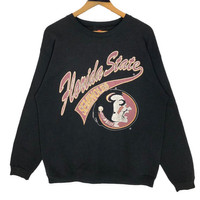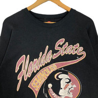 Vintage 90s Florida State University Seminoles crewneck sweatshirt in black colour. Pullover sweater with printed logo on the front. Still in good condition. See pictures for more details Condition : 9/10 Measurement Pit : 22.5 inch Length : 26 inch Shoulder : 22.5 inch Sleeve : 22 inch Size On Tag : none Size Recommended : M-L Normal Shipping FEDEX Processing time : 7-14 days Express Shipping DHL Processing time : 4-7 days IMPORTANT Check the manual measurement given before purchase. Failed to do so, no refund. StuffM179
